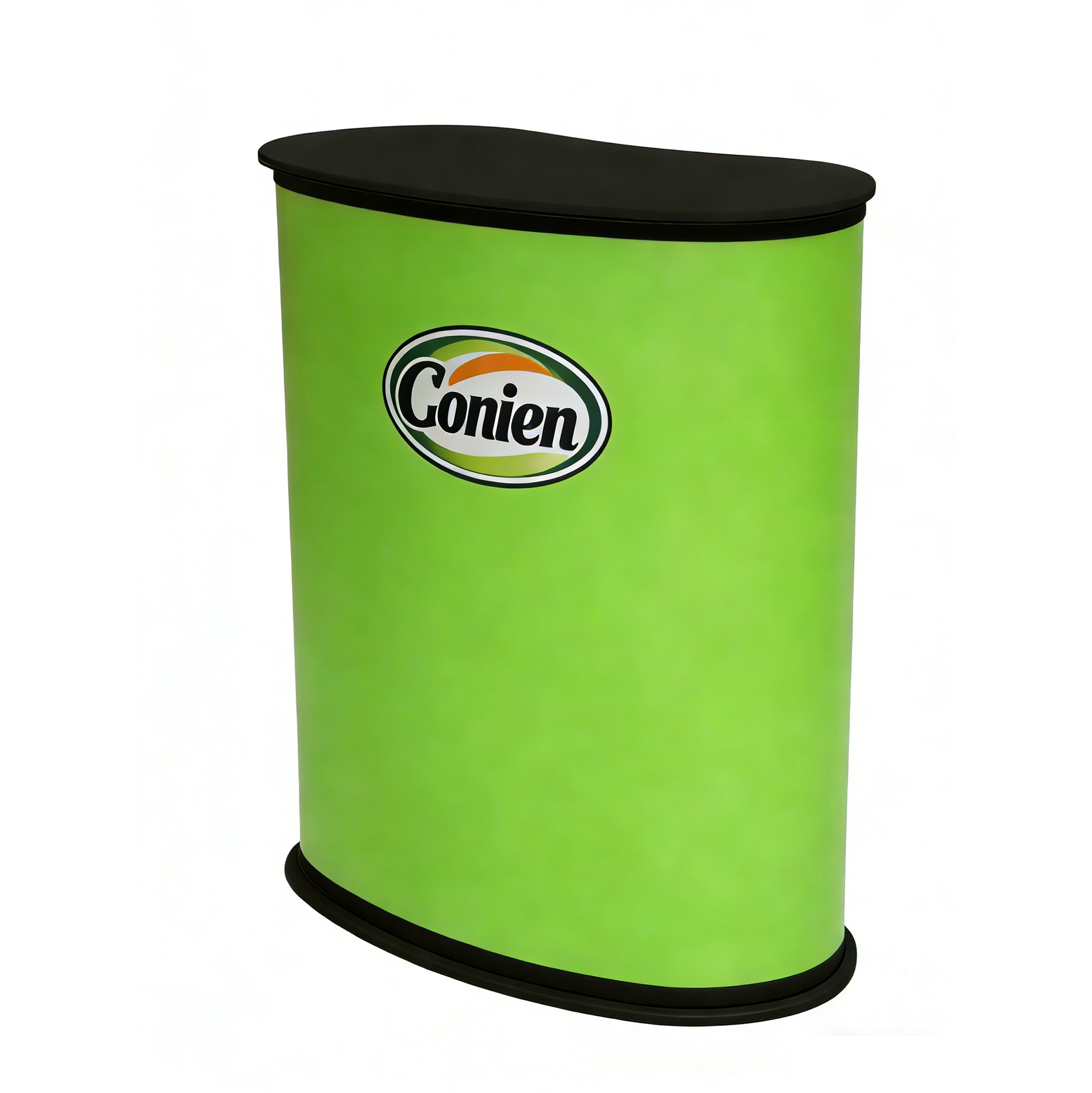 The completed counter size is 1300mm(L) x 400mm (W) x 970mm (H) The printed graphic panel wraps around the structure, 2050W x 940H (mm)
